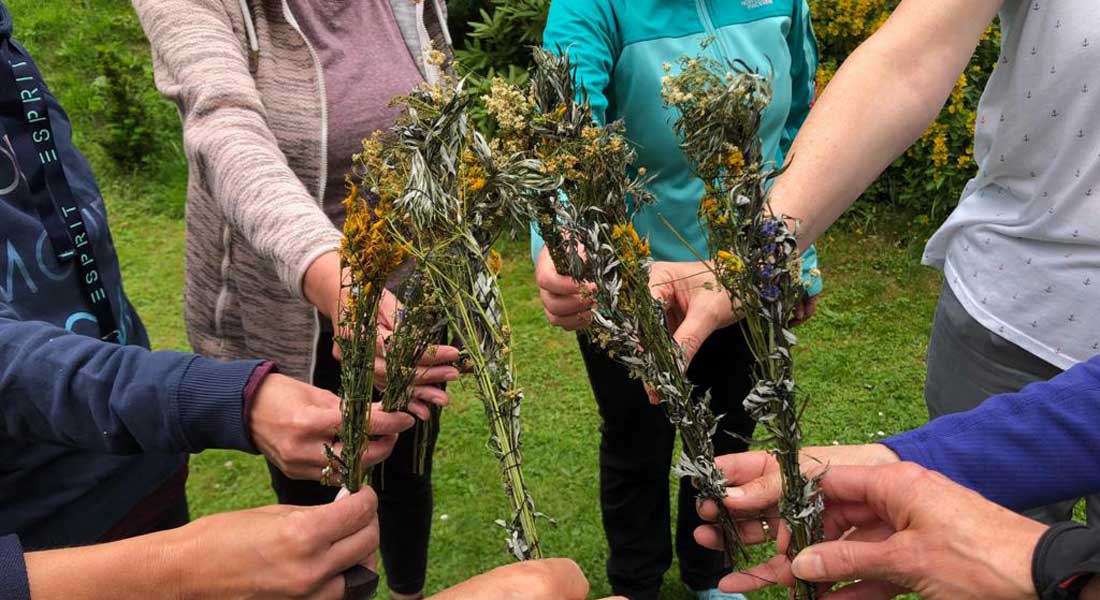 - auf Geräusche – zum Beispiel das Knacken des Holzes und Rascheln der Blätter unter unseren Füßen oder das Plätschern des Bergbaches und das Zwitschern der Vögel